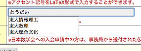 このシステムではAdobeJapan1-6で規定されている文字、および日本数学会固有の外字が講演題目、講演者名に利用可能です。