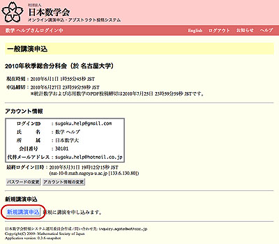 本オンラインシステムを用いての一般講演の申込方法は、おおむね次のような手順になります。